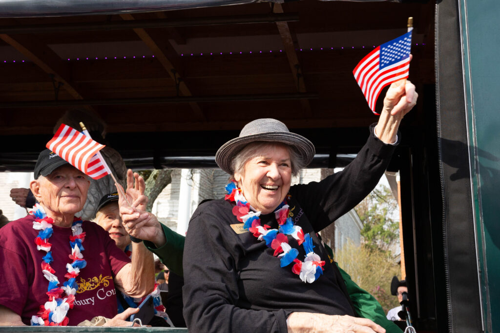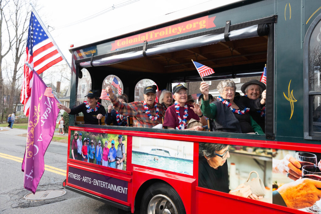 Newbury Court residents participated in Concord’s parade for the 250th celebration of the Battle of Lexington and Concord. All aboard the Colonial Trolley!