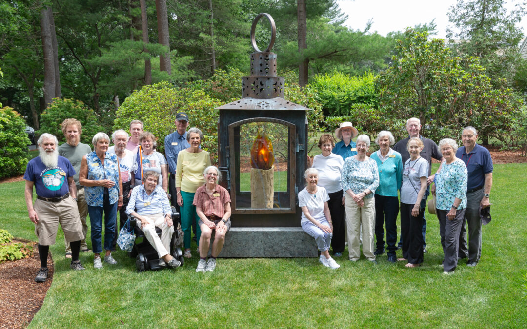 Newbury Court was honored to sponsor the Concord Museum’s replica of 1775’s “One if by Land, Two if by Sea” lantern preceding Paul Revere’s midnight ride to Concord. Residents took part in a ceremonial lighting.